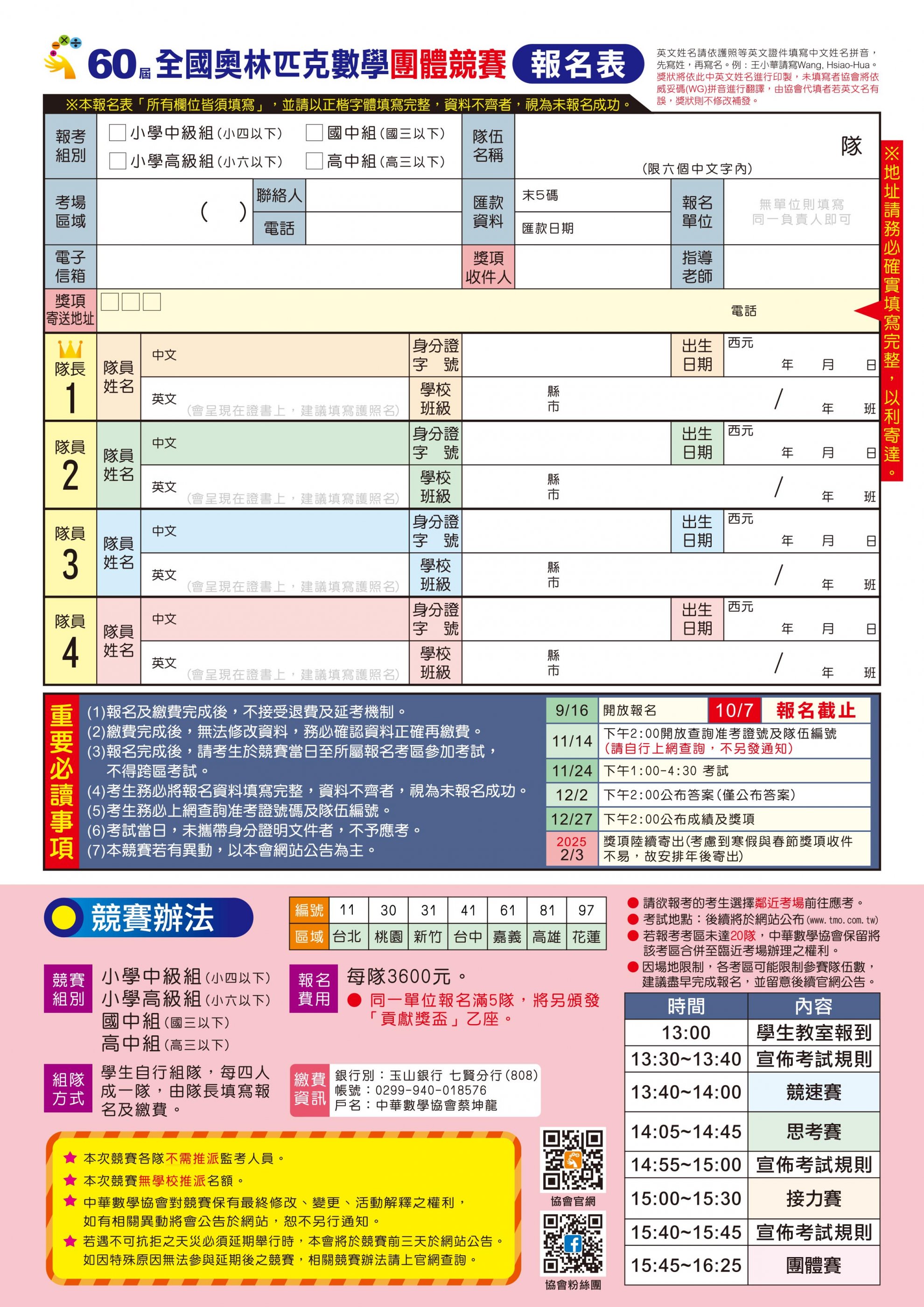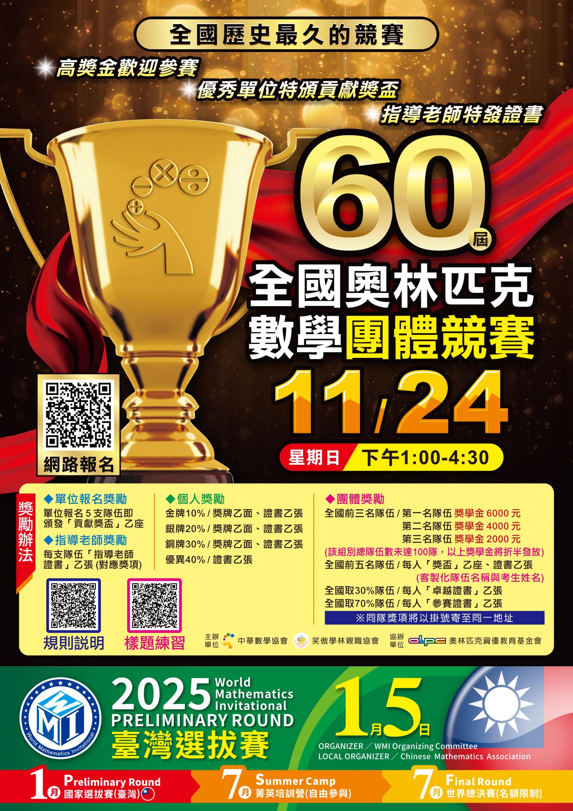 「第 60 屆全國奧林匹克數學團體競賽」競賽活動相關簡章,詳如附件。