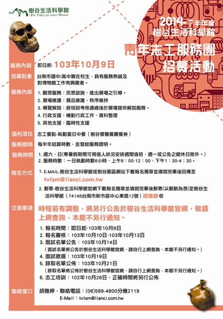說明:依據樹谷生活科學館 103 年 9 月 12 日樹科行字第 1030023 號函辦理