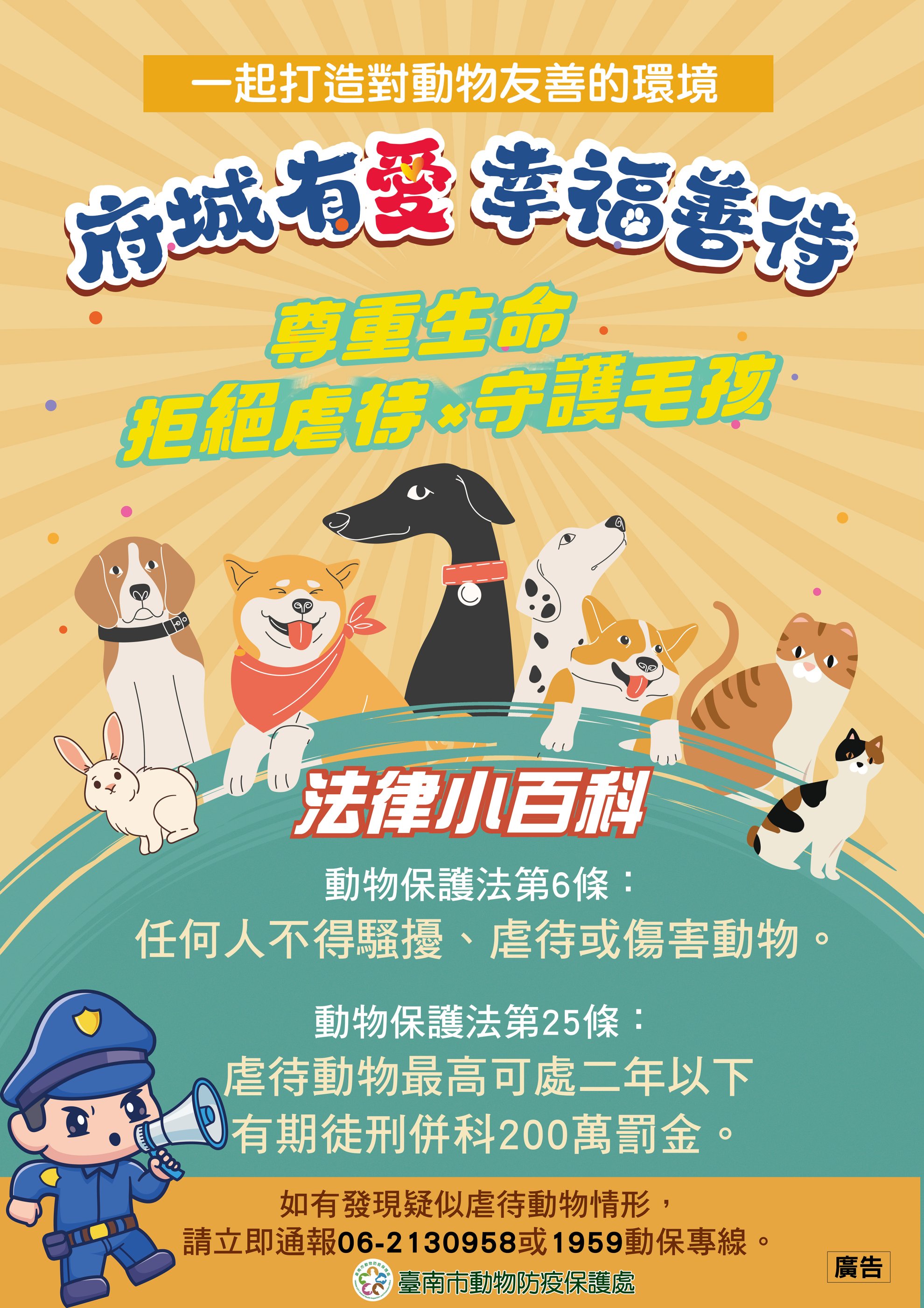 「府城有愛.幸福善待」海報電子檔 1 份,及教育影片網址連結( https://drive.google.com/file/d/1fVmjBMYSXOT8tidOO6wTxW0NwlMlHqDH/view?t=4 )