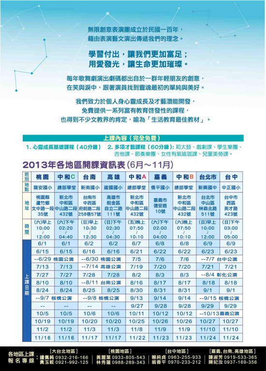 一、依據無限創意表演團 102 年 6 月 11 日無文字第 1020600301 號函辦理。