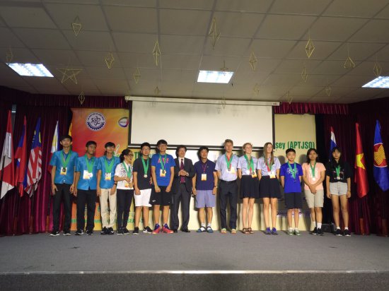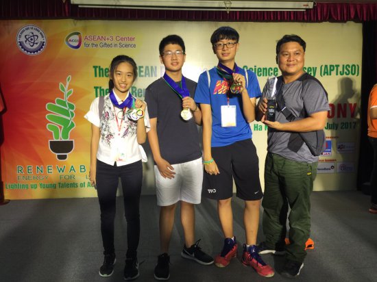 三位學生囊括各競賽大獎:「實驗總成績第一名」、「化學科第一名」、「物理科第二名」、「生物科第二名」、「團體體總成績第二名」;此外胡智堯同學在「跨國合作簡報競賽」中也獲得第二名的好成績。