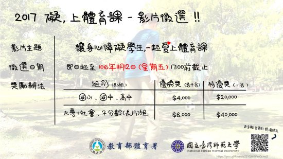 四、如有疑義請逕自聯絡:國立臺灣師範大學體育研究發展中心 蔡昇宏先生,電話: 0930-656560 /02-7734-5655 。