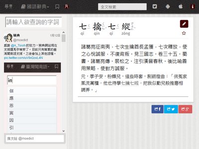 共收錄十六萬筆國語、兩萬筆臺語、一萬四千筆客語條目,每個字詞都可以輕按連到說明,並提供 Android 及 iOS 離線 App 。來源為教育部...