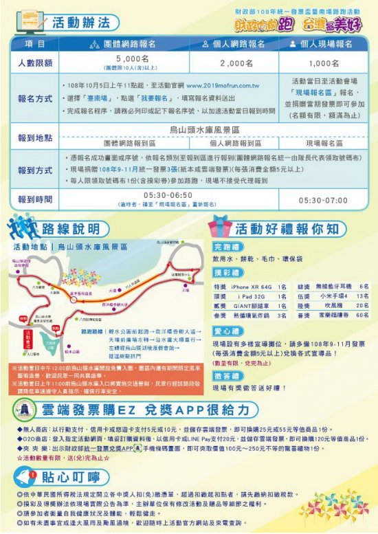 為財政部辦理「108 年統一發票盃臺南場路跑活動」,請協助宣傳活動訊息並鼓勵踴躍報名參加。