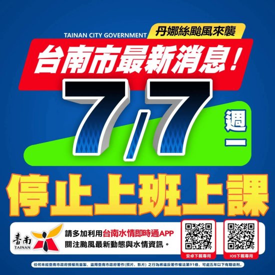 因為颱風來襲,明日7/7(一),青山國小暑期育樂營暫停一次。