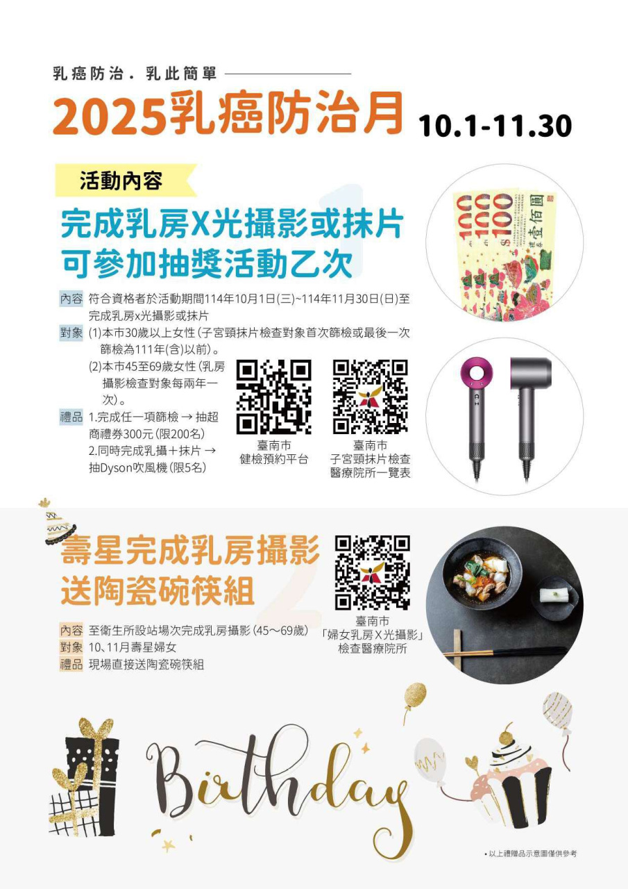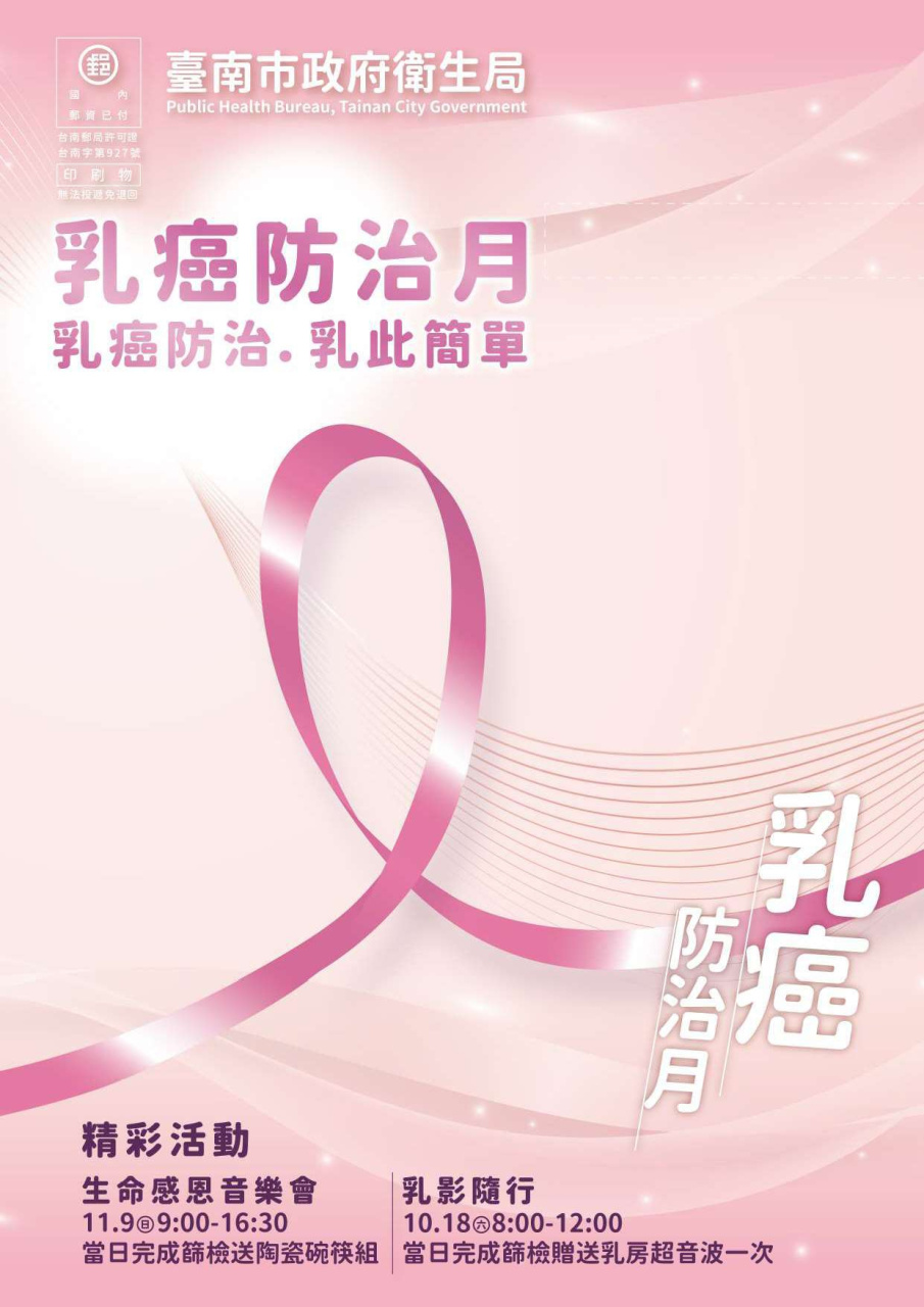 轉知:台南市衛生局辦理「乳癌防治月系列活動」