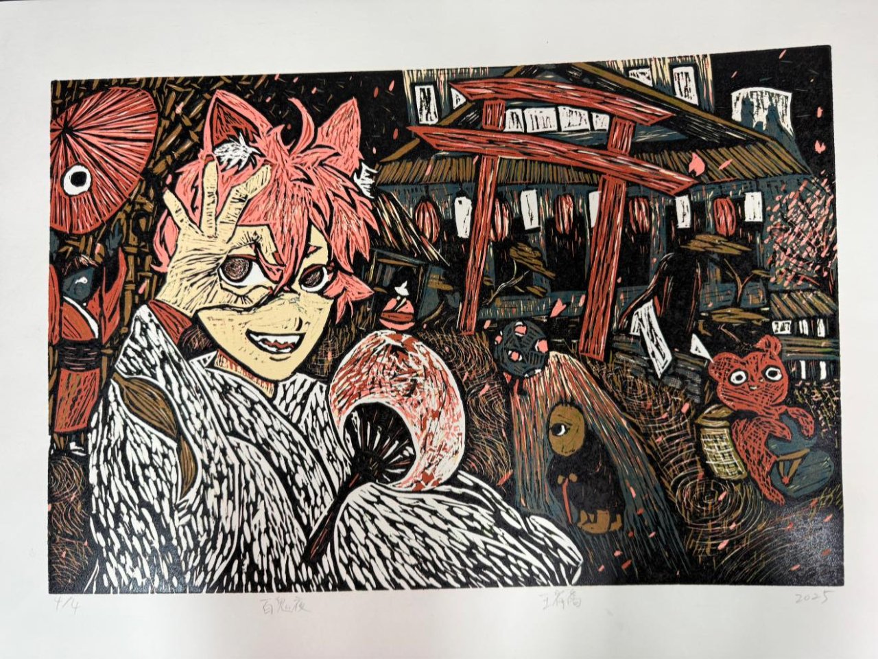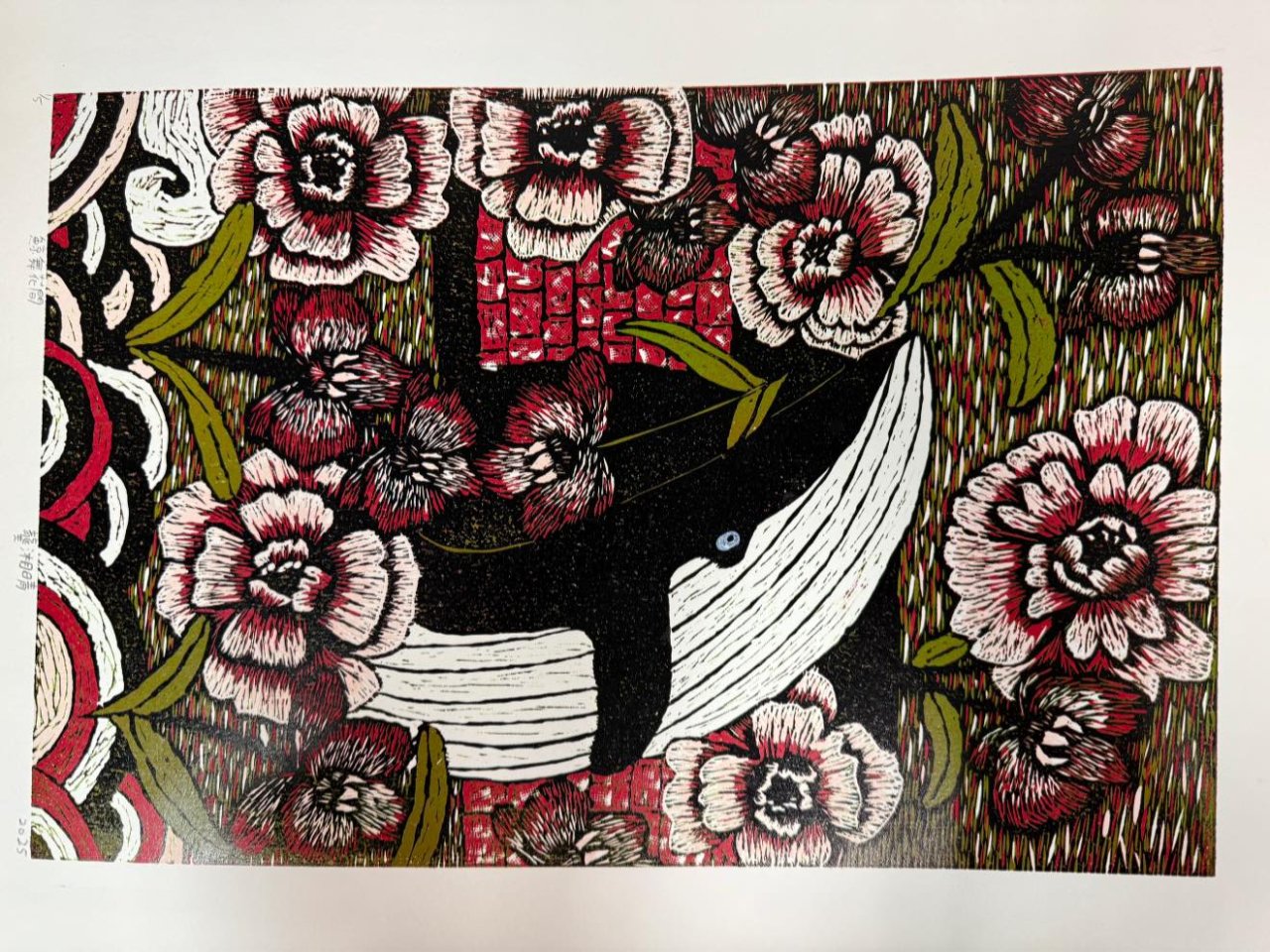 黃煥中-五分車的稻浪歌、王宥喬-百妖夜、龔湘晴-鯨舞花間,榮獲版畫類佳作獎項。