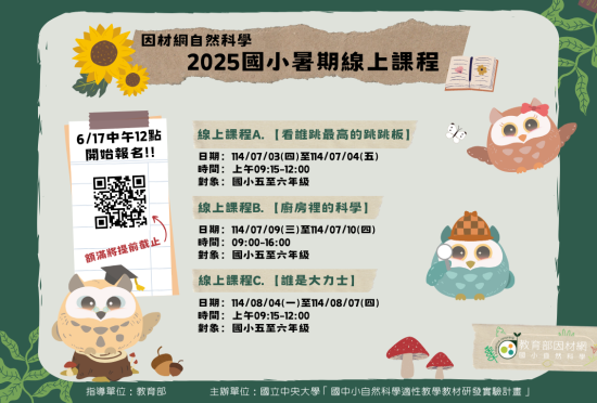 (一)因材網自然科學國小線上課程,報名連結: https://forms.gle/Mf2uJt5JKy7ZW4YT6 。