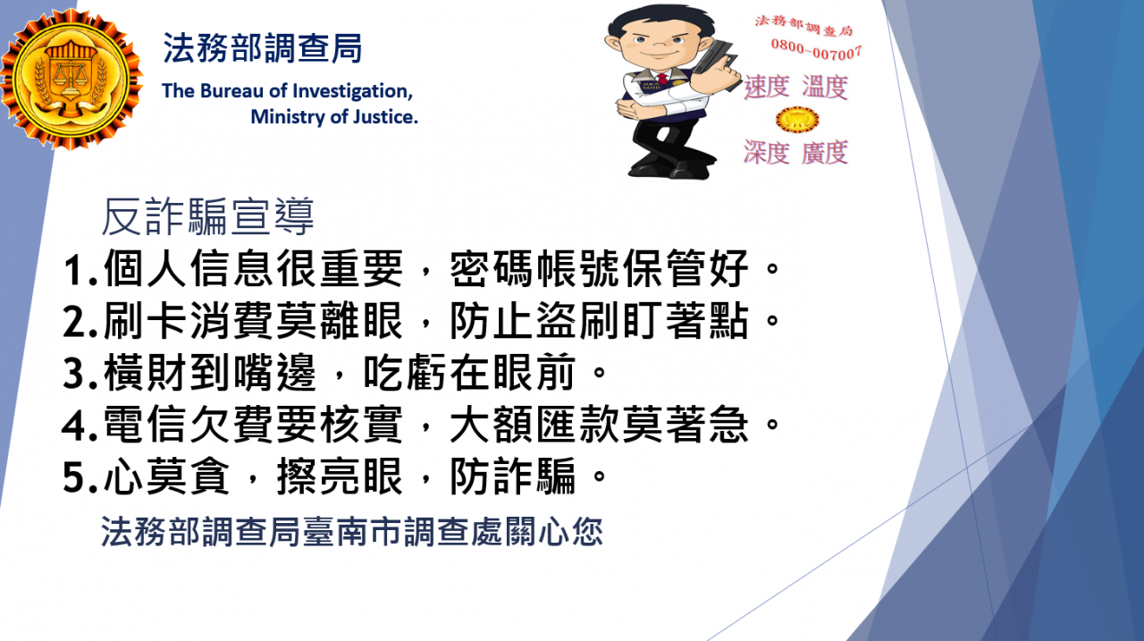 法務部調查局臺南市調查處為避免學校師生淪為此類經濟犯罪的受害者,