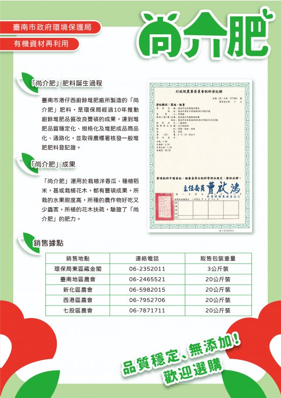 2021-02-08 通知 歡迎購買 本市城西廚餘堆肥廠所製造的「尚介肥」肥料