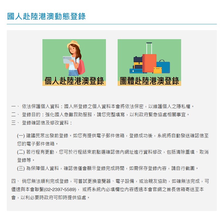 heart小叮嚀:建議您赴陸港澳前應謹慎評估自身安全風險,並可參考大陸委員會建置之「國人赴陸港澳風險專區」瞭解最新資訊。