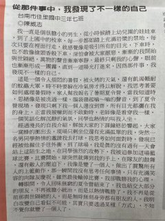 恭喜三年七班陳威志中華日報小作家投稿【中華日報】作品【從那件事中,我發現了不一樣的自己】榮獲刊登