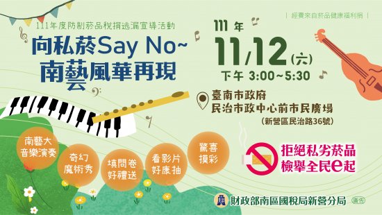 三、電子字幕宣導內容:新營國稅局於 11/12(六)下午 3 時-5 時 30 分