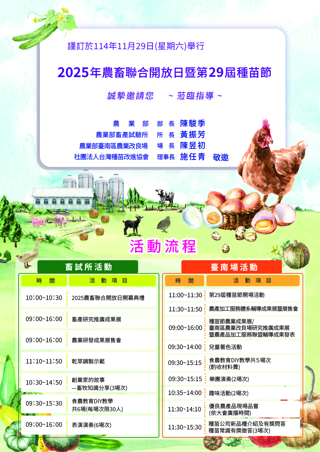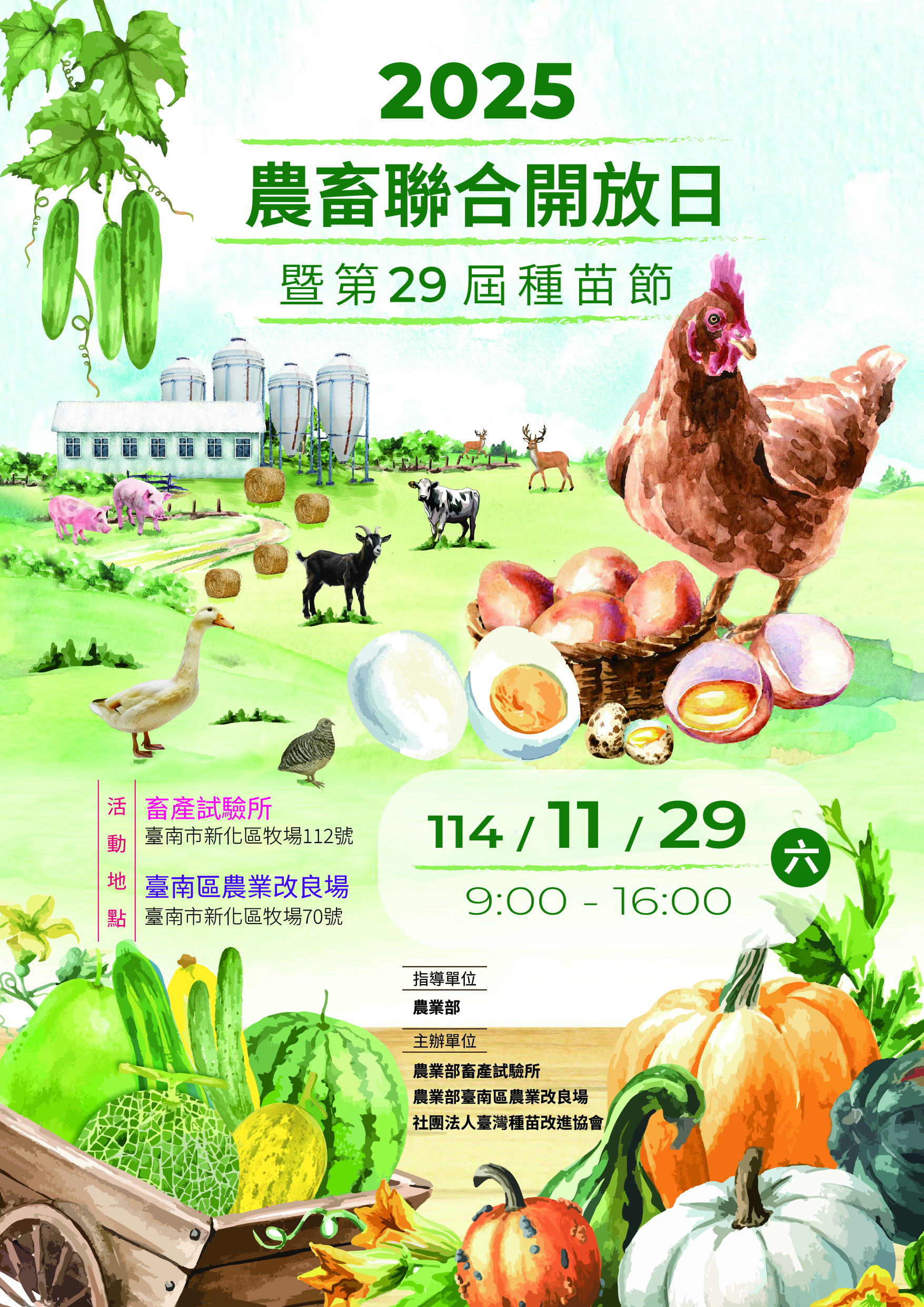 訂於 114 年 11 月 29 日(星期六)舉辦「2025 農畜聯合開放日暨第 29 屆種苗節」活動