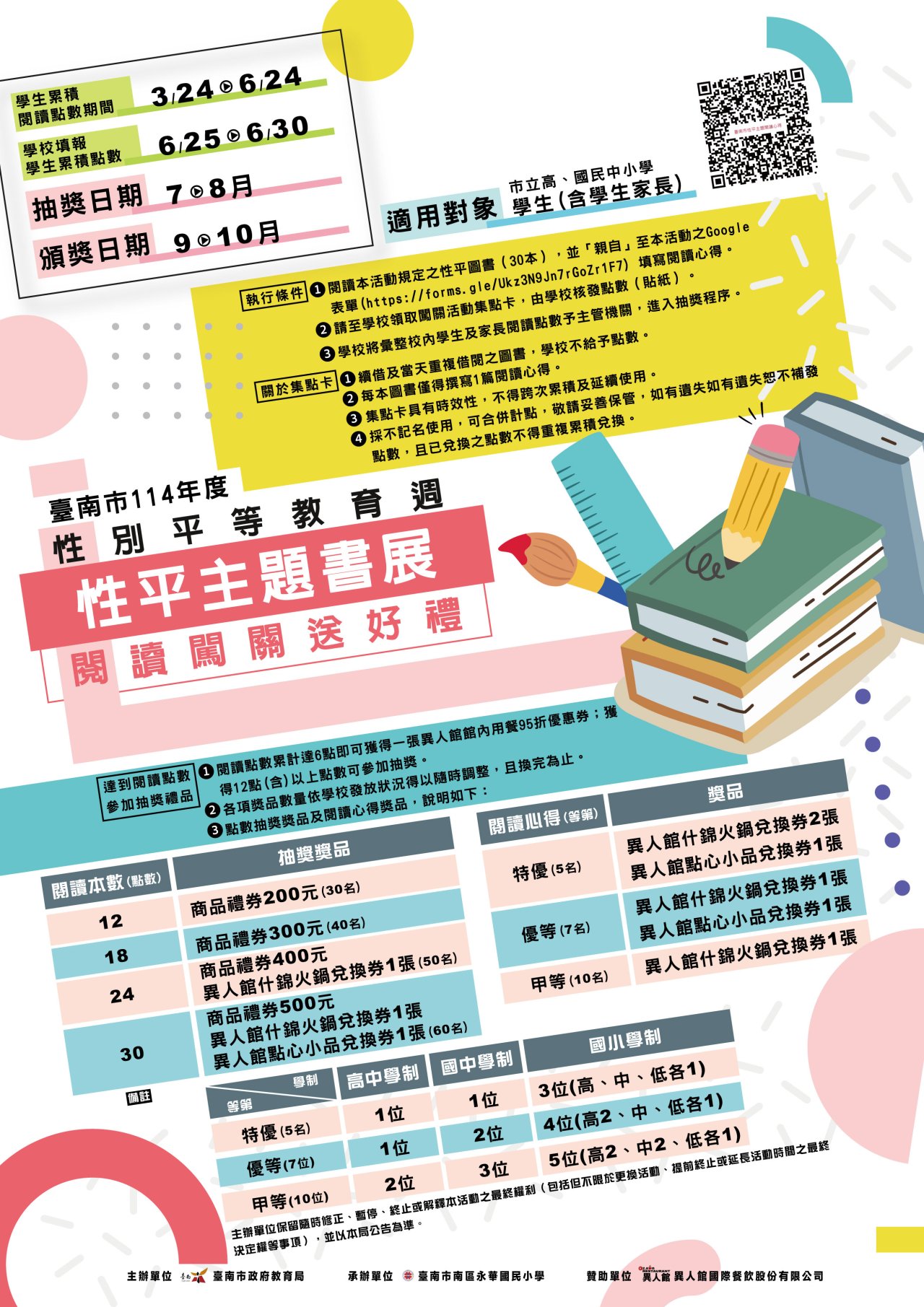 1、累積閱讀點數期間:114年3月24日起至114年6月24日。