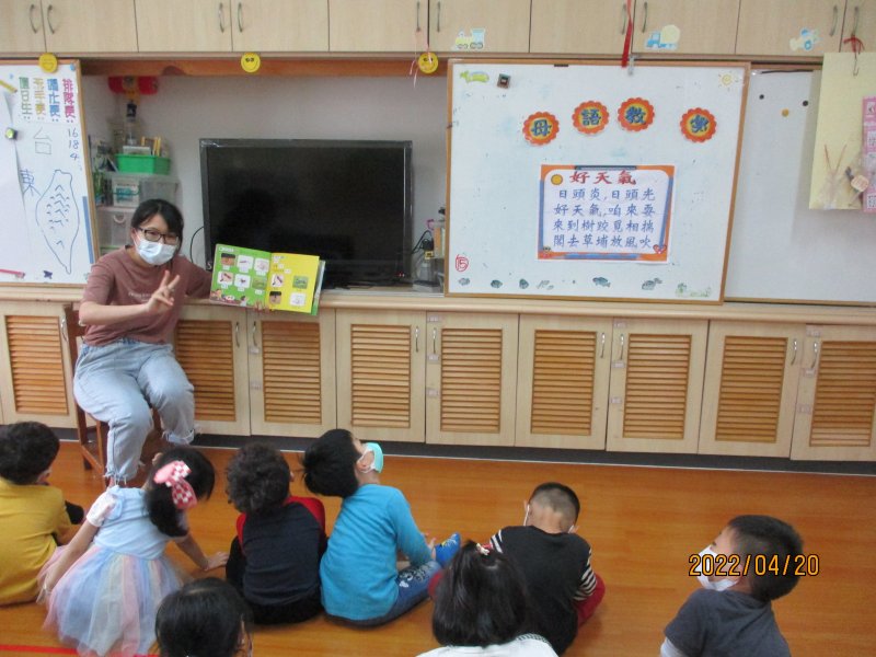 以故事引起動機,學習天氣相關臺語念法,教唱台語童謠~好天氣.進行律動.