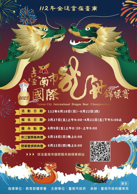 起至 4 月 21 日(星期五)下午 5 時止(報名網址:https://dragonboat.tainan.gov.tw/)。