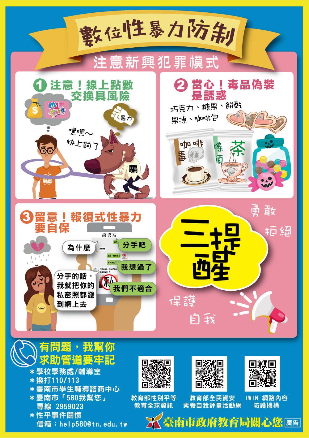 (四)教育部防治數位性別暴力文宣: https://www.gender.edu.tw/web/index.php/m7/m7_11_02_index