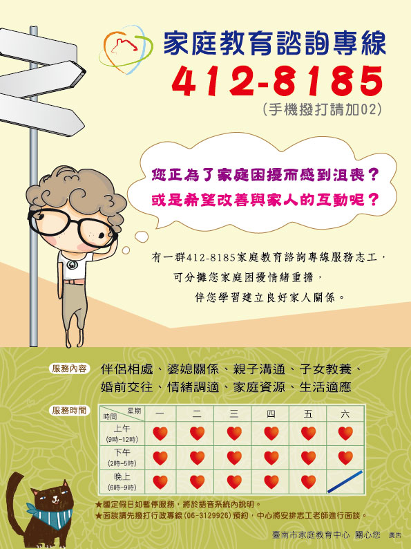 (二)增設線上視訊面談服務,提供行動不便之民眾可預約安排,增加通用性家庭教育服務,以便利民眾使用輔導服務之機會。