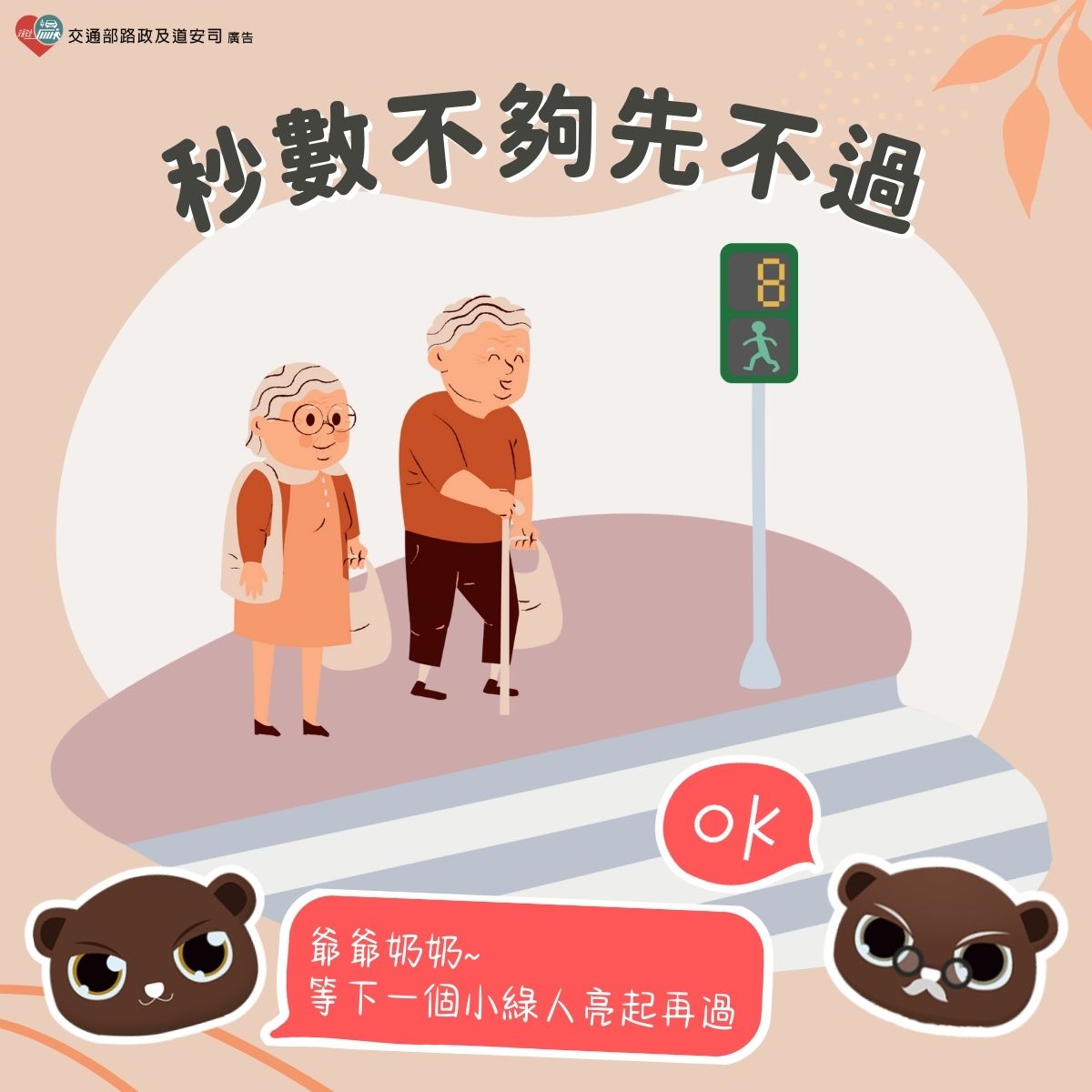交通宣導:長輩早起散步過馬路,小綠人秒數不夠先不過!