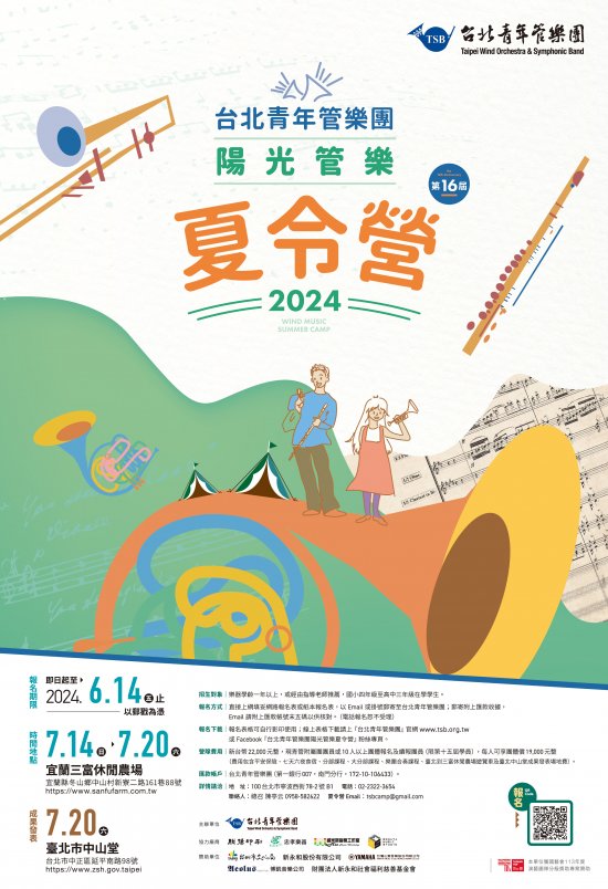 一、台北青管暑假最受歡迎的陽光管樂夏令營,聘請專業師資,規劃豐富充實課程,並規劃於 113 年 7 月 20 日(六)下午 2 點 30 分假臺北市中山堂中正廳舉辦成果發表會,歡迎喜愛管樂演奏學生踴躍報名參加。