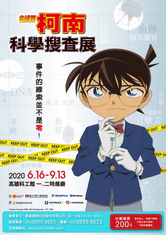 聯合數位文創訂於 109 年 6 月 16 日至 109 年 9 月 13 日於國立科學工藝博物館舉辦「名偵探柯南 科學搜查展」 (高雄場)活動。