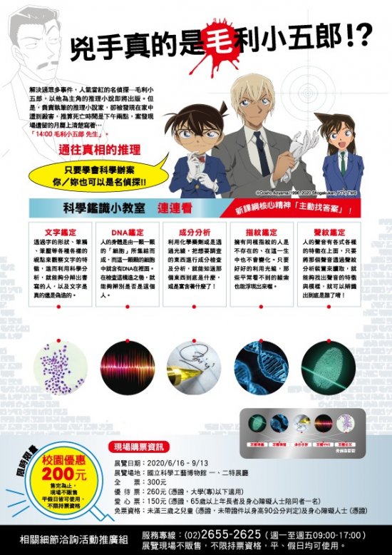 (三)展覽介紹:引進日本超人氣的特別企劃,「名偵探柯南科學搜查展」在日本陸續巡迴了東京、名古屋、福岡、大阪等地