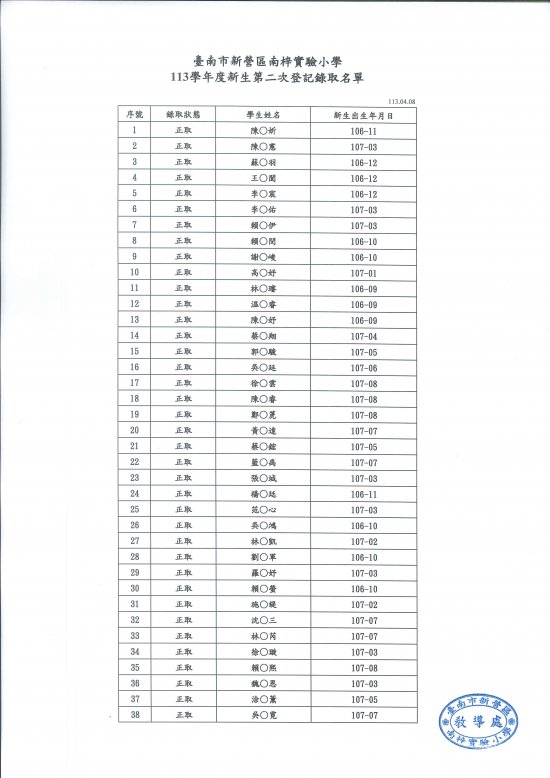 1) 臺南市新營區南梓實驗小學_113新生錄取名單0408.jpg