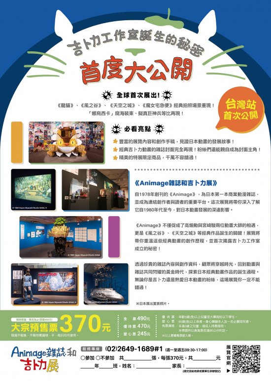 力的動畫世界中,留下珍貴的回憶。為了完美呈現吉卜力熱門動畫的獨特氛圍,吉卜力工作室更特別派出專業職人團隊來台灣,打造全球首次展出的獨家拍照場景!包括《龍貓》、《風之谷》、《天空之城》和《魔女宅急便》的經典畫面,也能成為雜誌封面人物,絕對不容錯過!