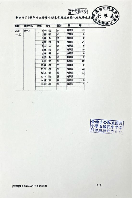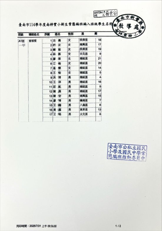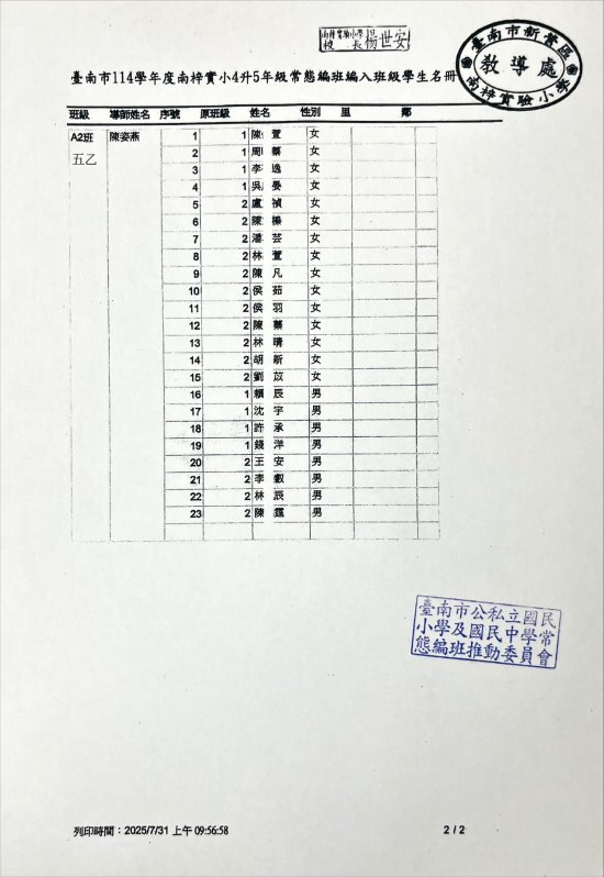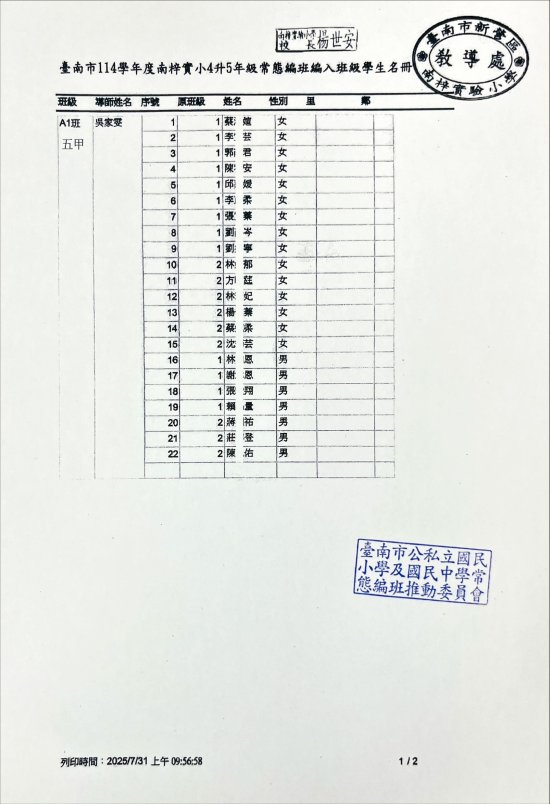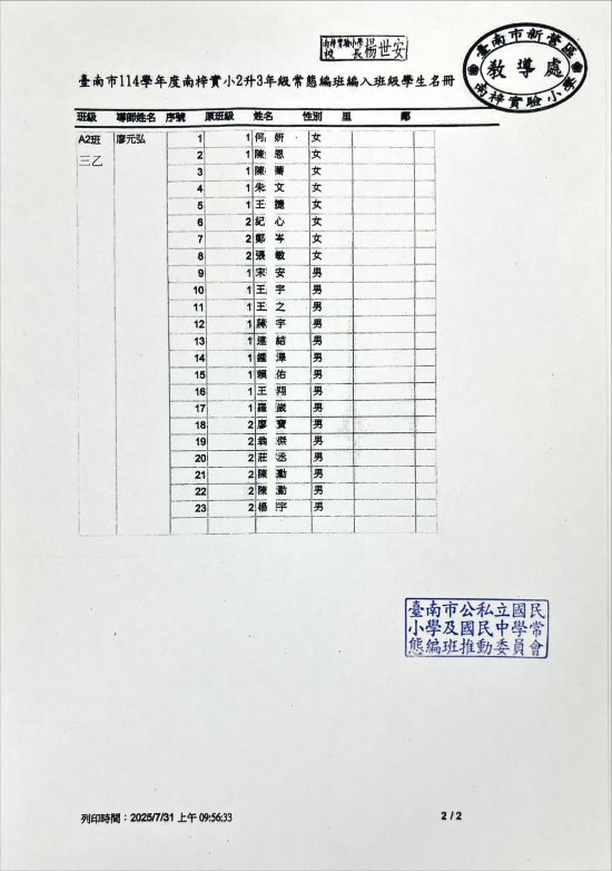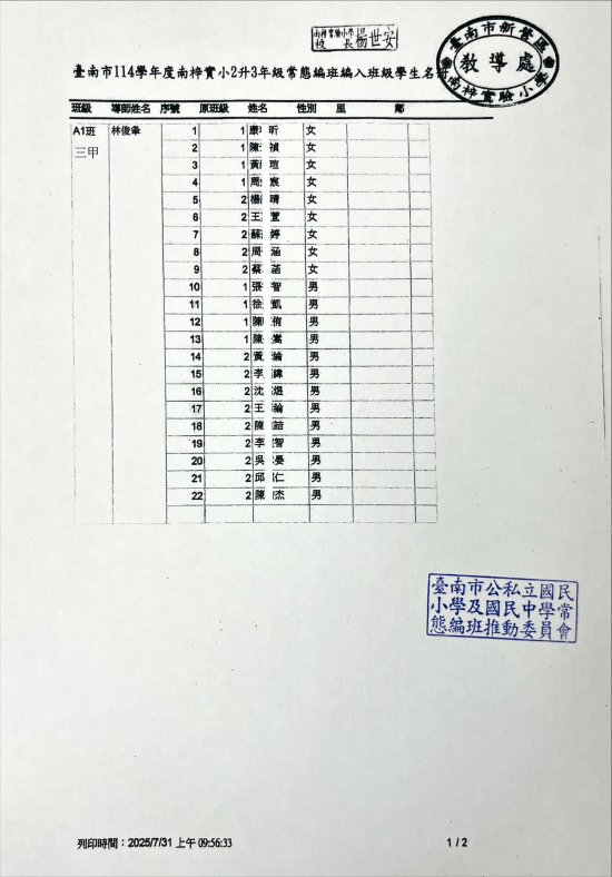 臺南市 114 學年度一、三、五年級編班已完成,由教育局進行編班及核定名單,本校編班名單請詳見附件檔,家長亦可至台南市教育局常態編班系統查詢喔!