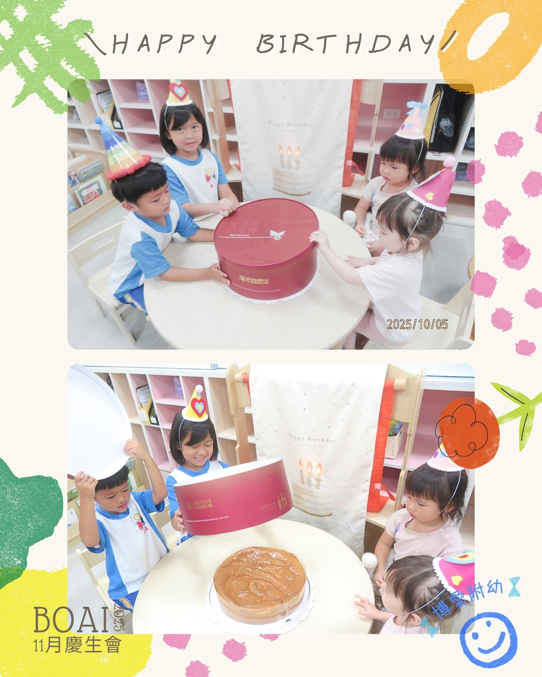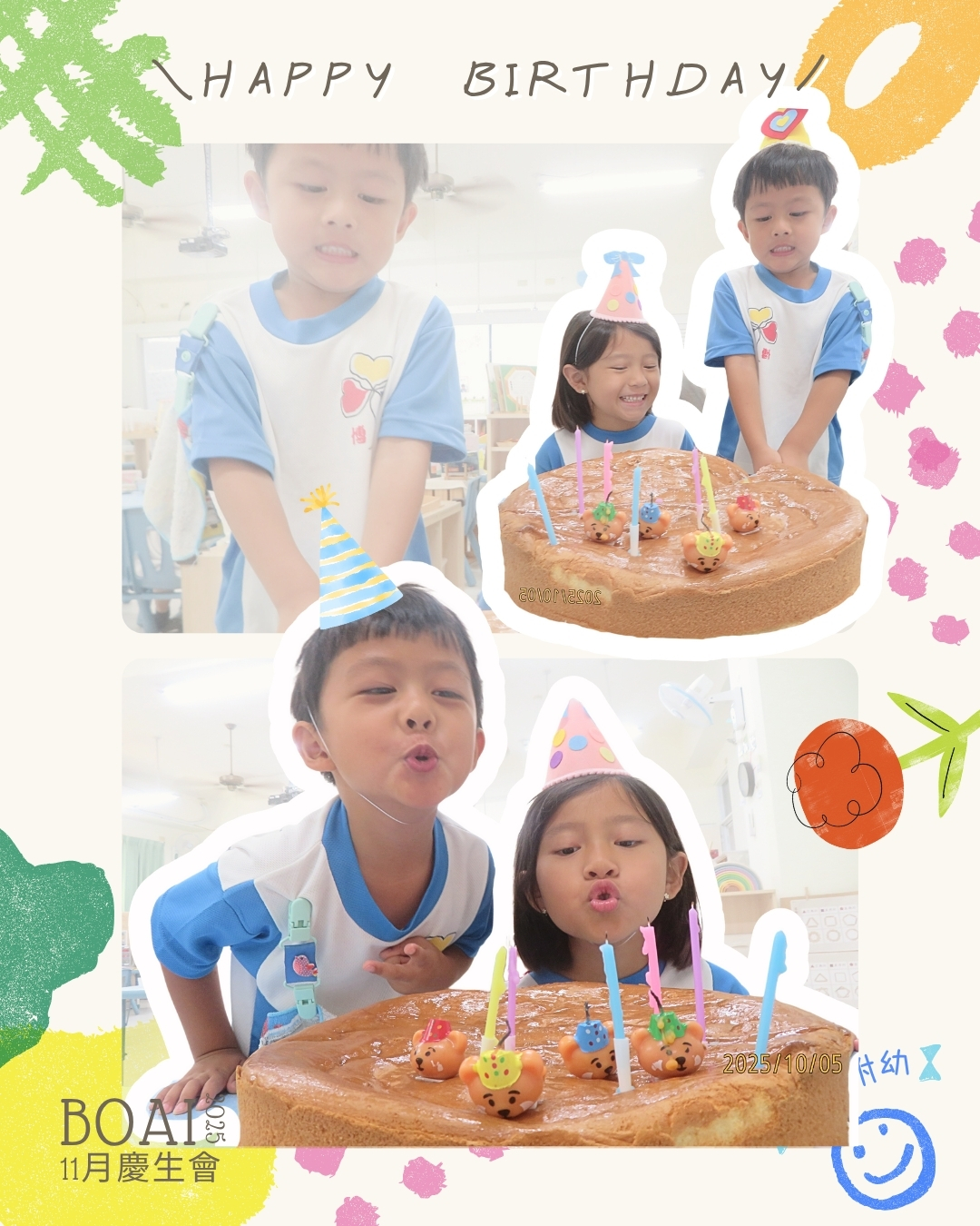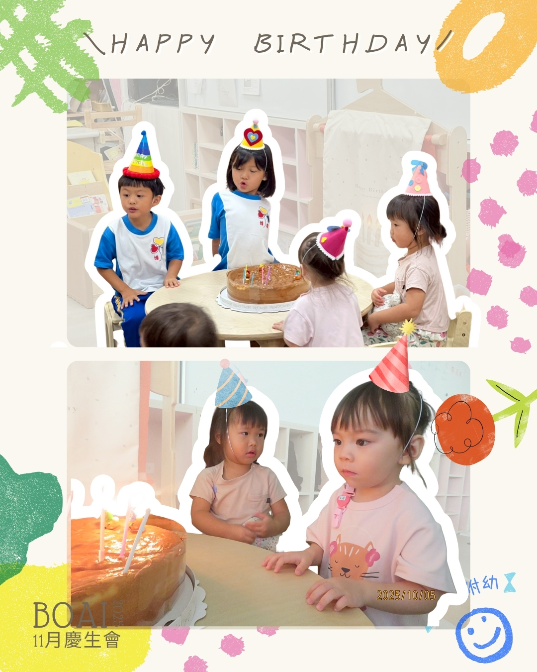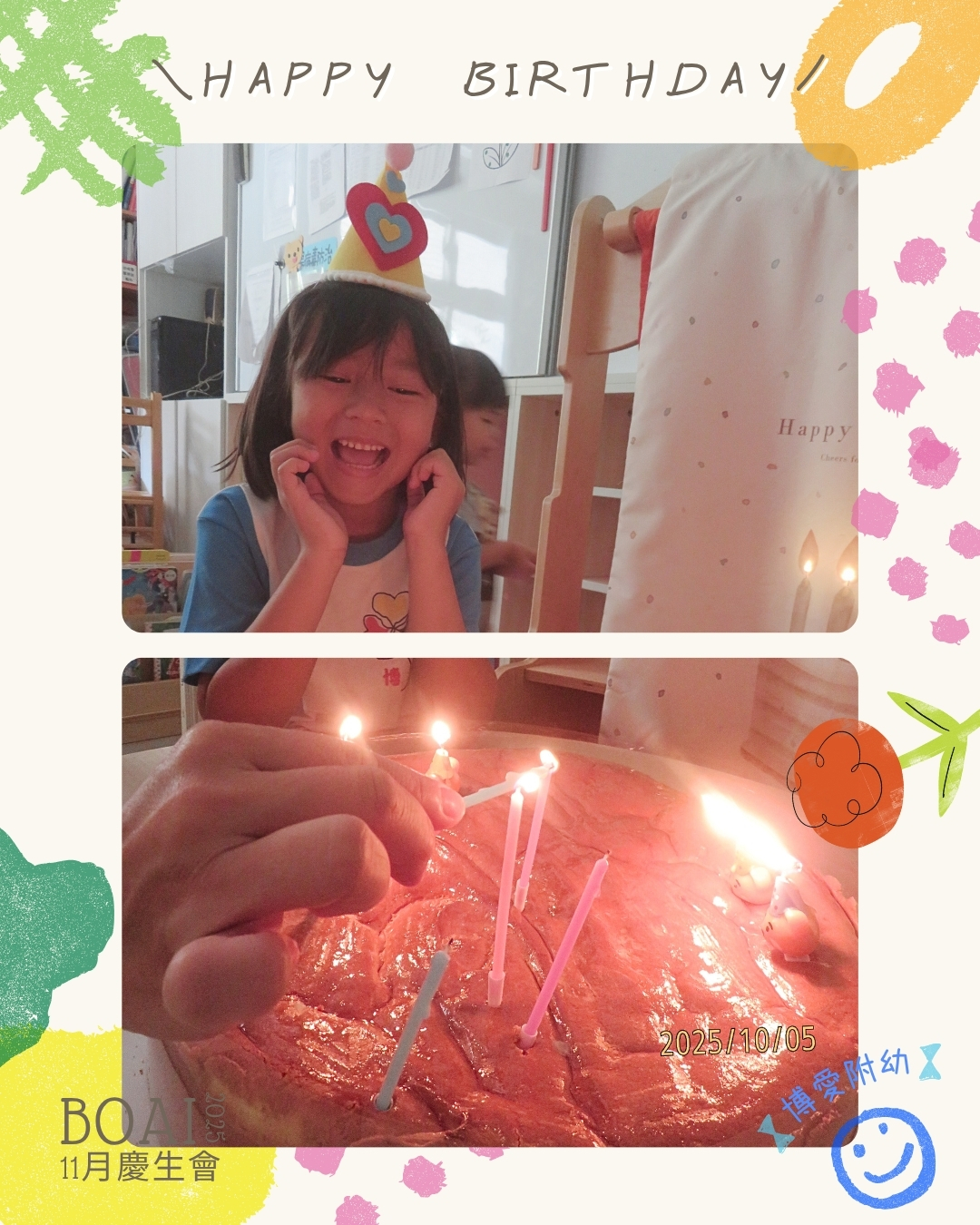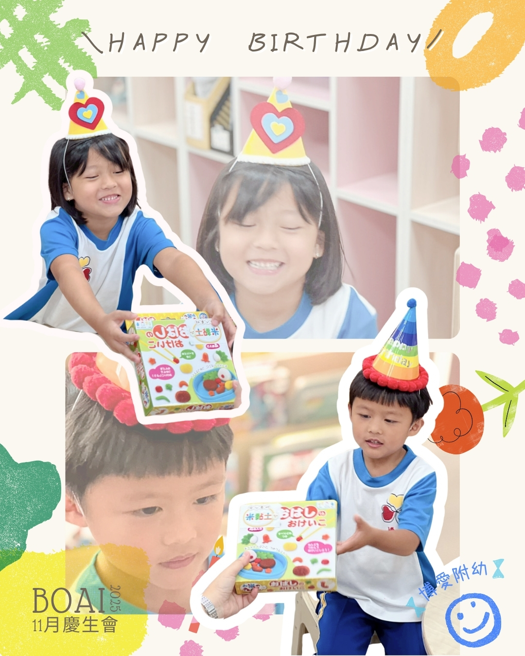 🎂 11月壽星生日快樂 🎉 今天我們一起為鳳梨班兩位哥哥姊姊 和豆苗班兩位小可愛慶生💗 點上小小蠟燭、一起唱起生日快樂歌, 孩子們的眼睛亮亮的, 充滿期待與祝福 ✨ 儀式感,就是這麼簡單卻這麼美。 學校為孩子們準備的生日禮物是—— 米黏土小小手作組 🍚👐 希望孩子們能在揉、搓、捏的過程裡 留下獨特的生日回憶, 與一份屬於自己的創作小驚喜。 願十一月的小壽星們—— 平安、健康長大! 生日快樂,親愛的寶貝們💕