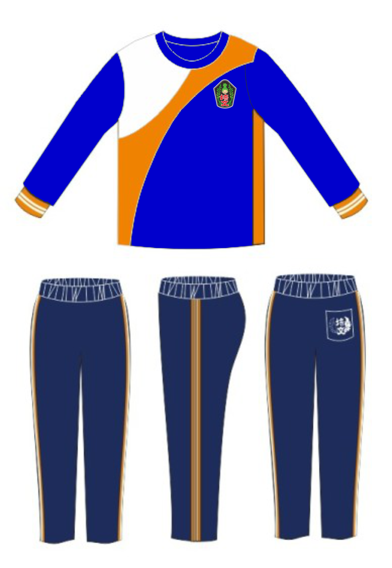 三、115學年度新生服裝樣式如下圖,未來僅販售該樣式體育服,不再提供其他款式,二年級以上舊生可繼續穿著舊款,若有需求可另行購買。