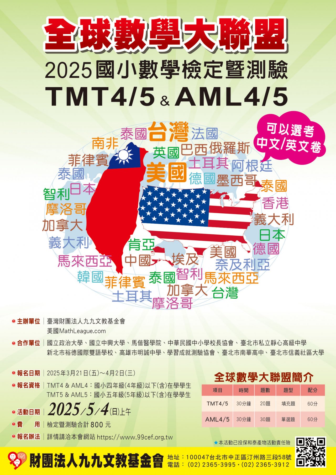(二)AML 為美國 MathLeague.com 所主辦之國際檢測。