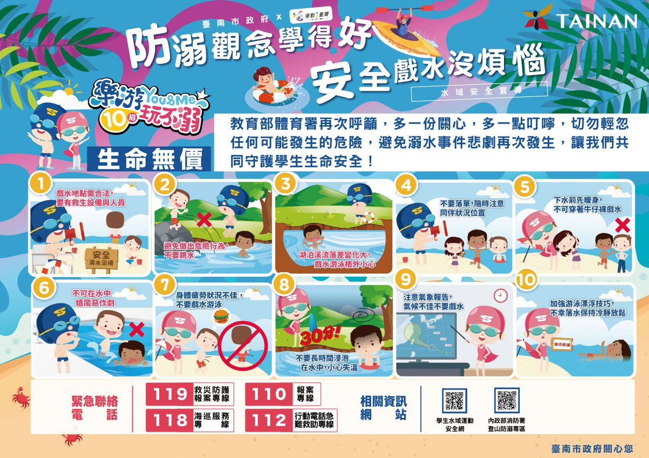 (三)本局臺南市水域安全宣導: https://sports.tainan.gov.tw/html2/services?mesg_guid=646f0cd9b6d1e 。