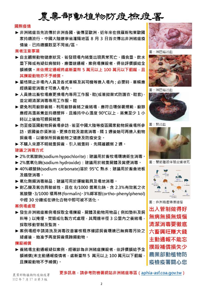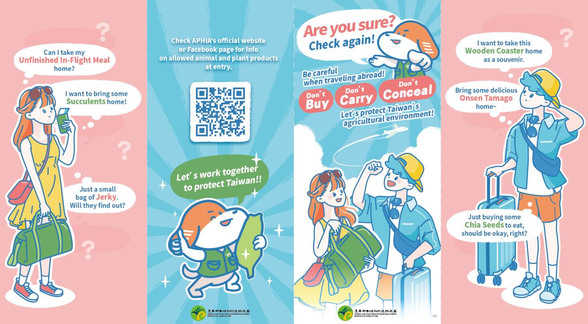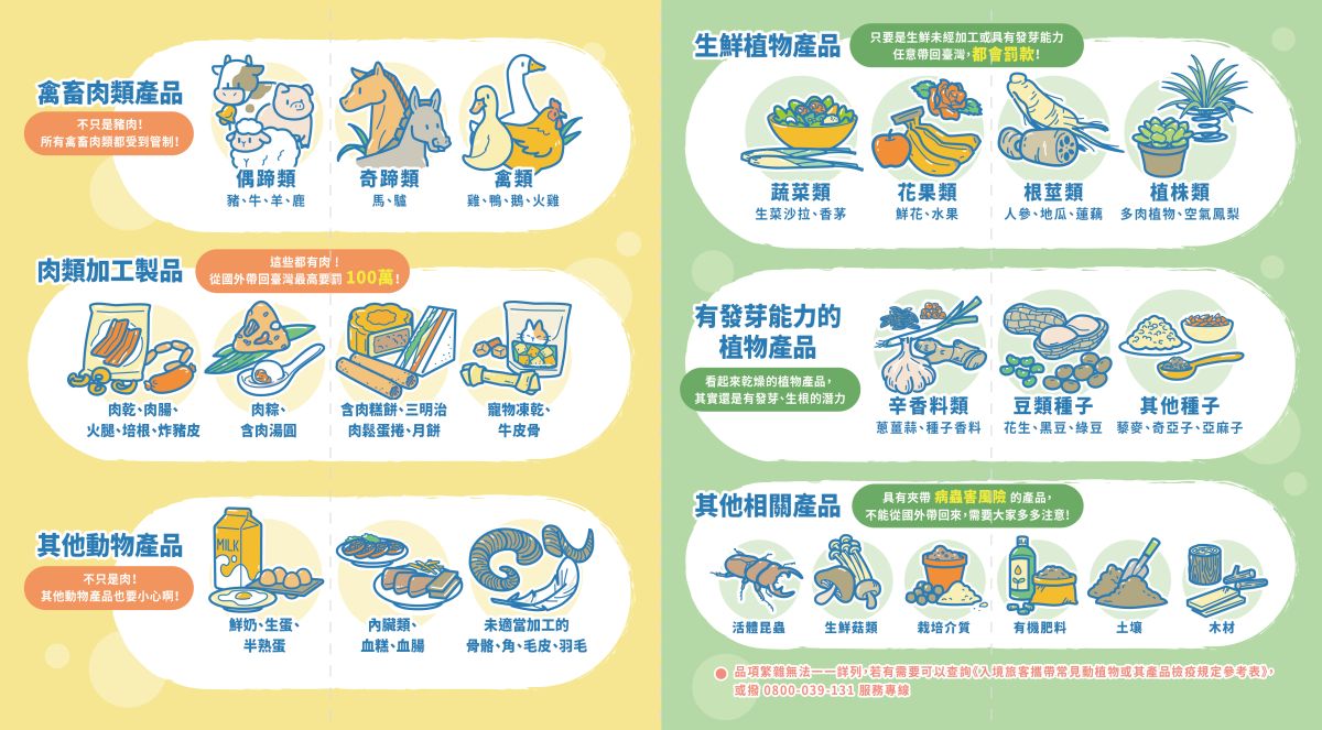農業部動植物防疫檢疫署來文表示, 113 年國人違規攜帶動物檢疫物案件,以自中國大陸、香港、越南、日本、澳門及新加坡返國者較多,常見違輸入動物產品,有肉鬆蛋捲、火腿腸、香腸、鳳爪、肉乾、半熟蛋、雞鴨鵝肉製品及含肉飛機餐等,入境時勿攜帶動植物檢疫物,並請轉知國外親友,勿郵寄豬肉產品等動物檢疫物到臺灣,以免受罰。