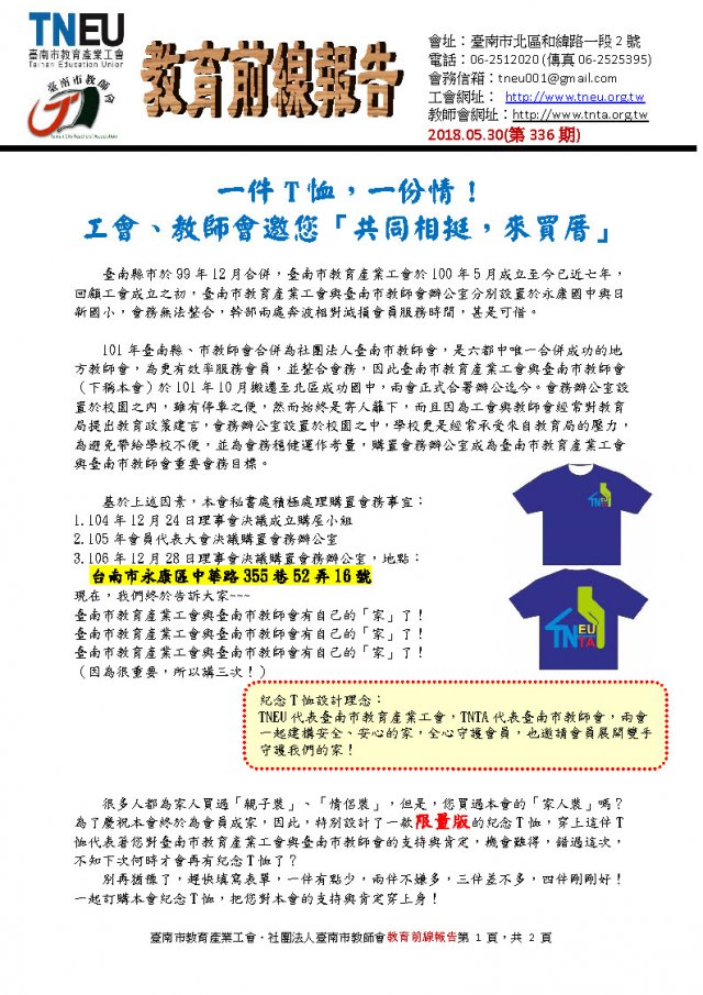 20180530教育前線報告(一件T恤,一份情!工會、