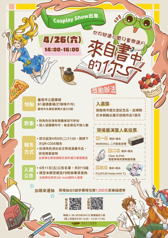 一、配合 2025 年世界閱讀日,本館訂於 114 年 4 月 26 日(六)辦