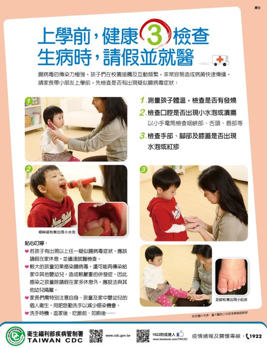 最近是腸病毒好發的季節,提醒大家一定要注意個人衛生!請勤洗手,特別是在吃東西前、上廁所後與回家時,都要確實用肥皂搓洗三十秒以上。同學若出現發燒、喉嚨痛、手腳起水泡等症狀,務必要告訴家長並儘早就醫,生病期間不要到校,以免傳染給同學。讓我們一起保持良好衛生習慣,遠離腸病毒,守護健康校園!