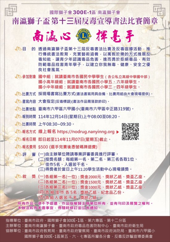 活動當日如遇不可抗力因素導致停班停課,活動將另行公告於臺南市政府毒品危害防制中心粉絲團 https://www.facebook.com/antidrug.tainan/ 。