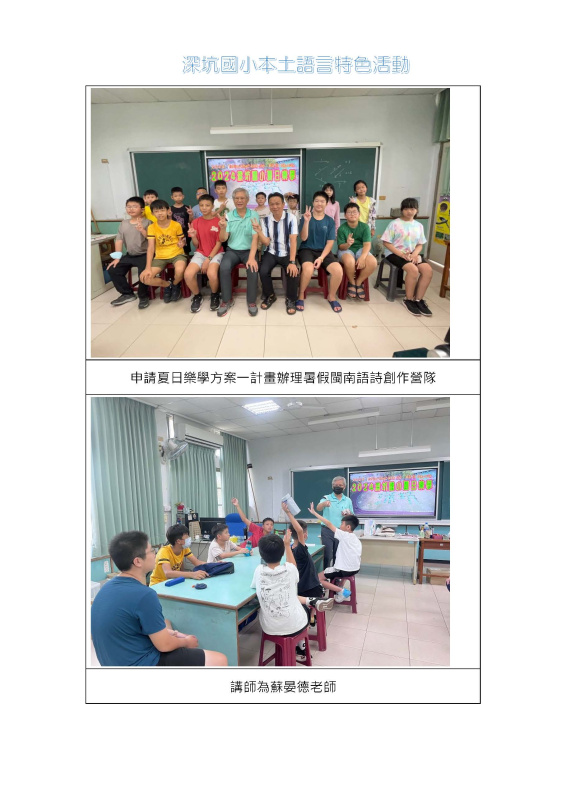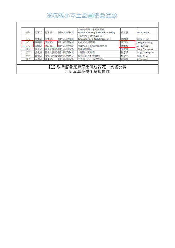 9-1 臺南市105學年度第1學期深坑國小原住民族語開課績效說明表
