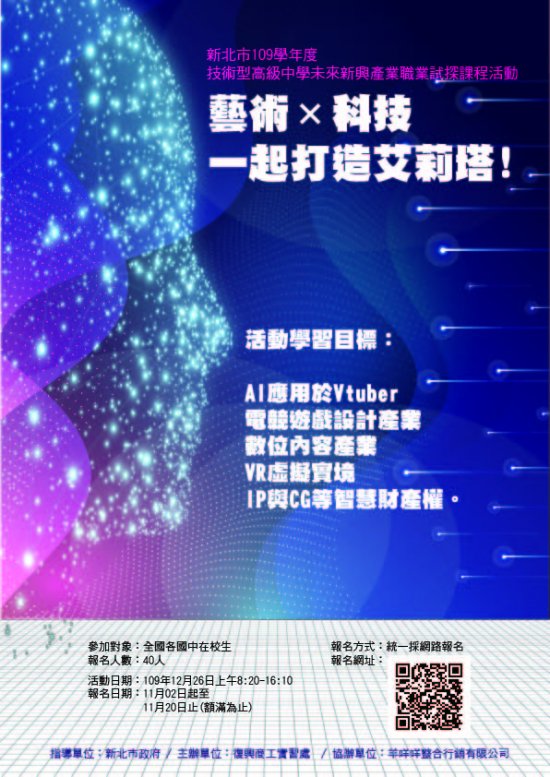 四、參加對象:對藝術類 AI 設計應用有興趣的國中在校生,皆可報名參加。