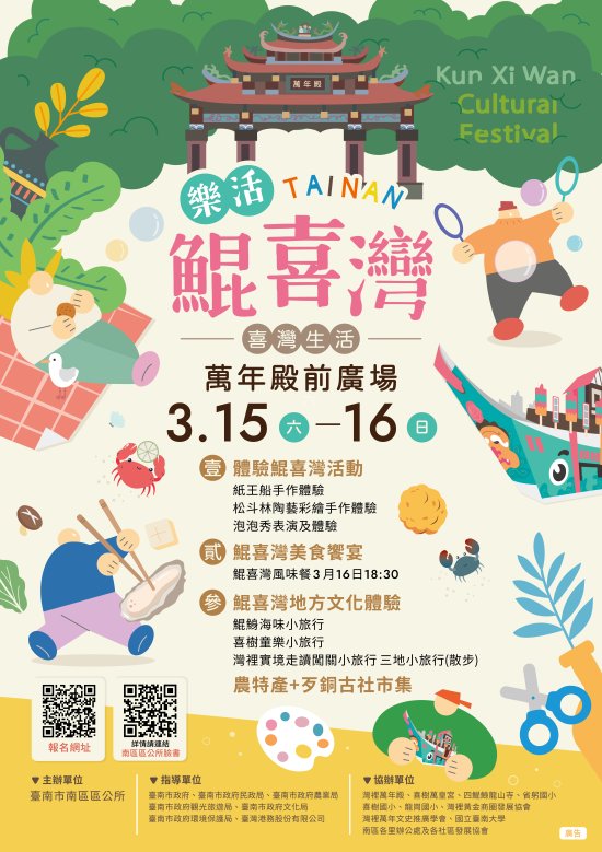 南區區公所訂於114年3月15、16日假鯤喜灣三地辦理「2025樂活鯤喜灣」活動,有興趣者可參加。
