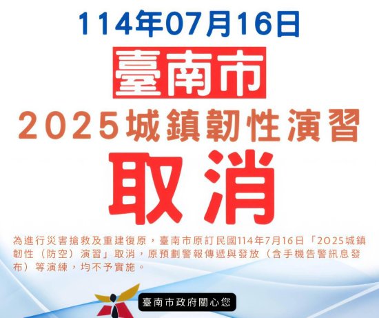 轉知114年7月16日本市2025城鎮韌性演習取消乙案