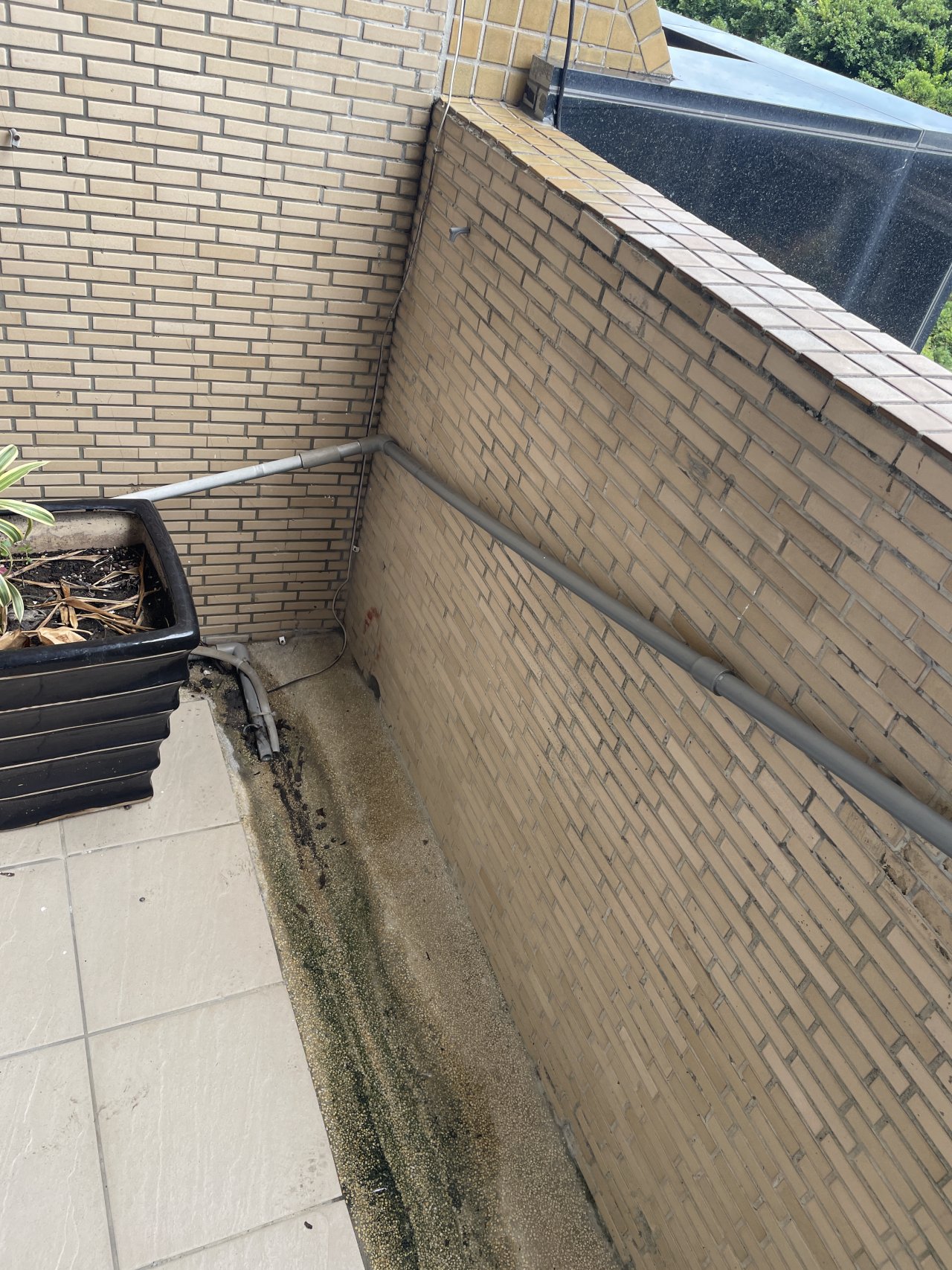 將輔導室內陽台開飲機進水管固定在牆壁上的固定環斷裂,導致進水管垂在地上
