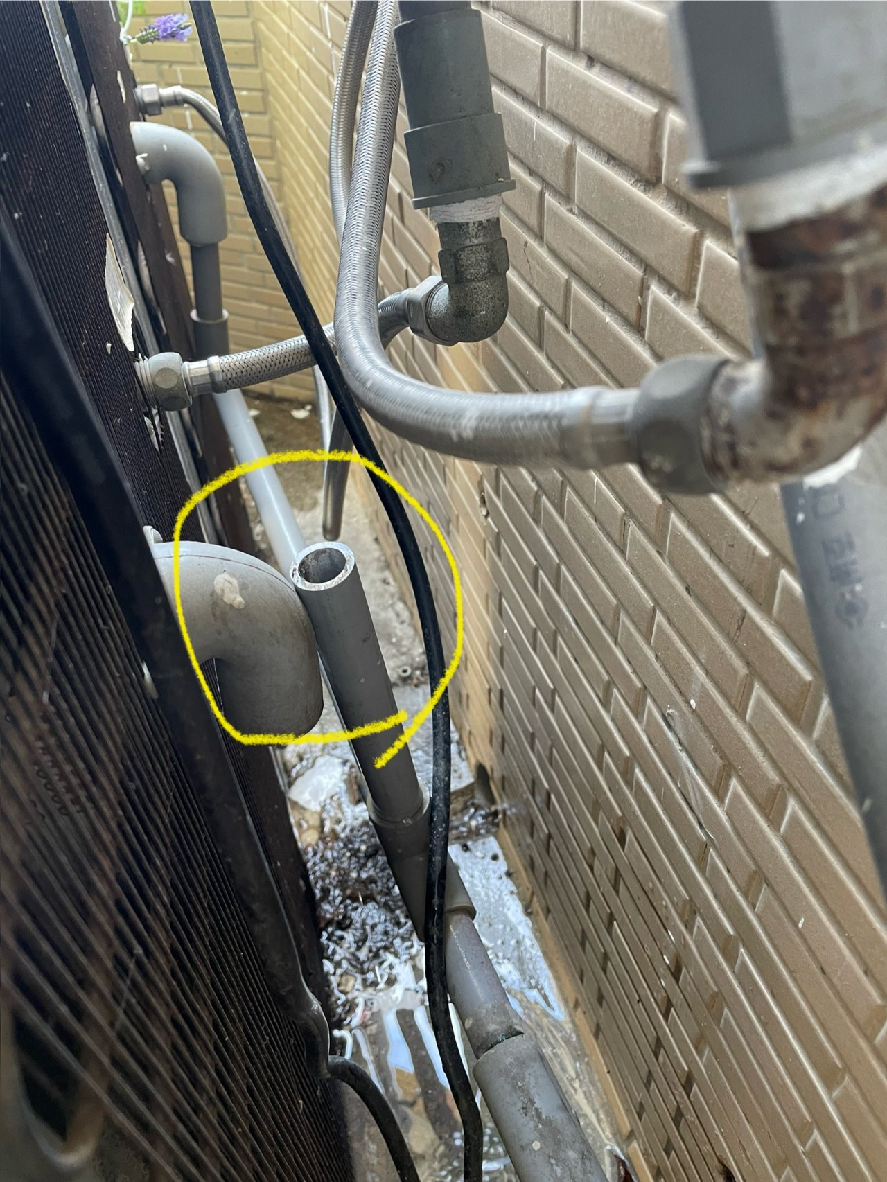 開飲機排水管斷裂,只要倒水就會直接流到地上