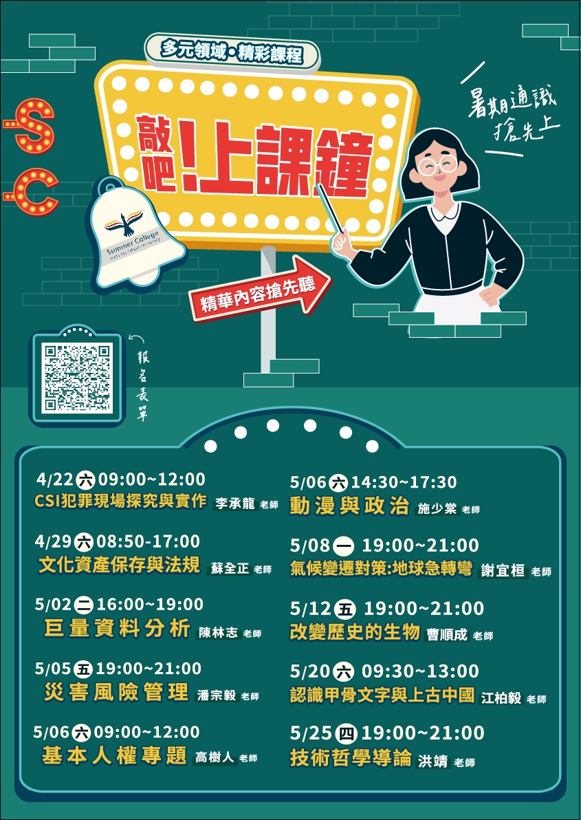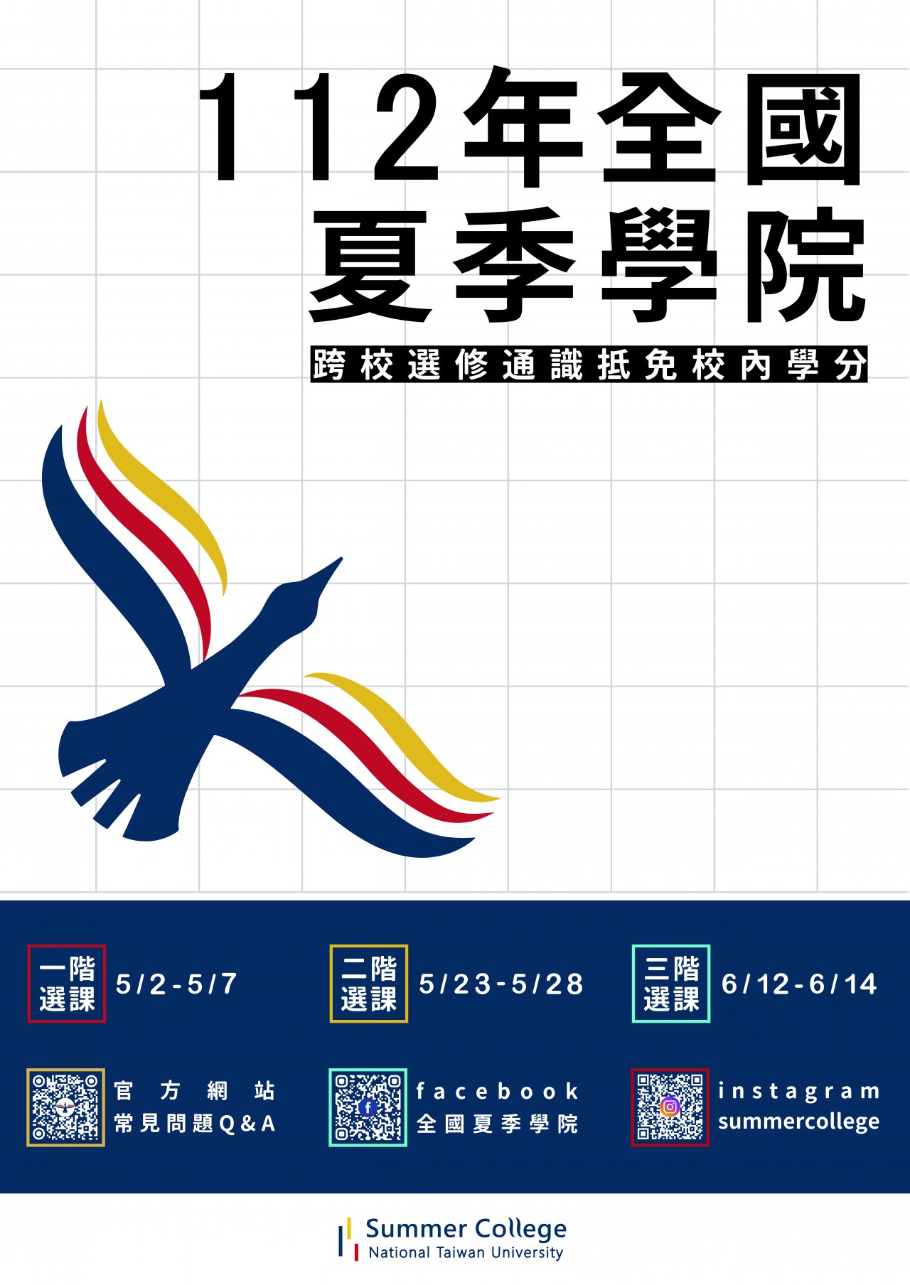國立臺灣大學「112 年全國夏季學院開放高中生修習課程清單」、「112 年全國夏季學院暑期通識課程海報」及「112 年全國夏季學院課程前導講座海報」。
