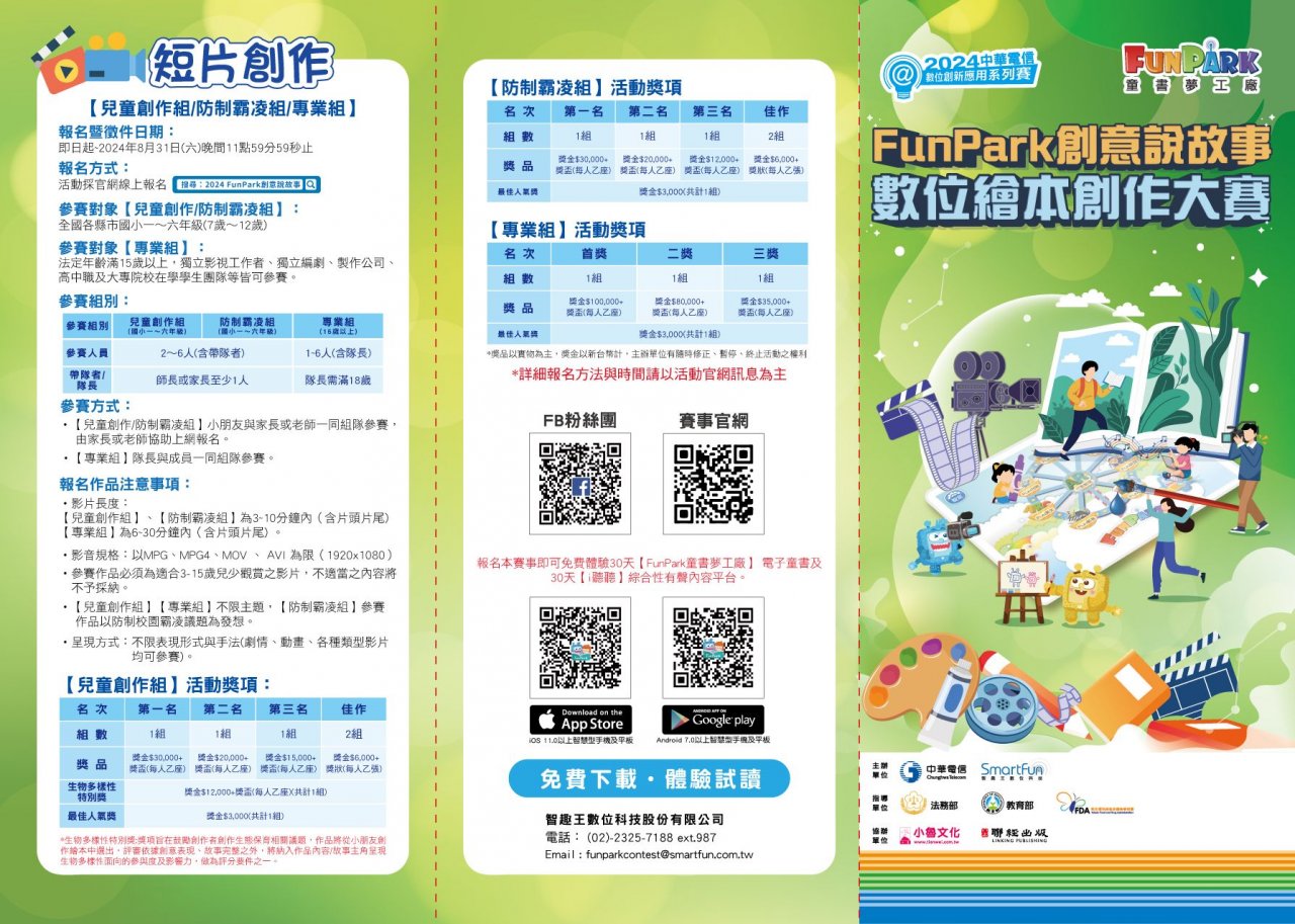轉知法務部辦理「FunPark創意說故事-數位繪本創作大賽」活動資訊1份,鼓勵學生踴躍參加。