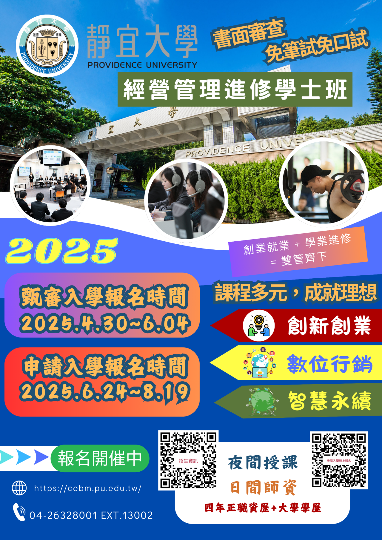 二、本校經營管理進修學士班經教育部核定自 114 學年度起恢復招生,第二階段申請入學自 114 年 6 月 24 日 10:00 起至 8 月 19 日 24:00 止開放網路報名。