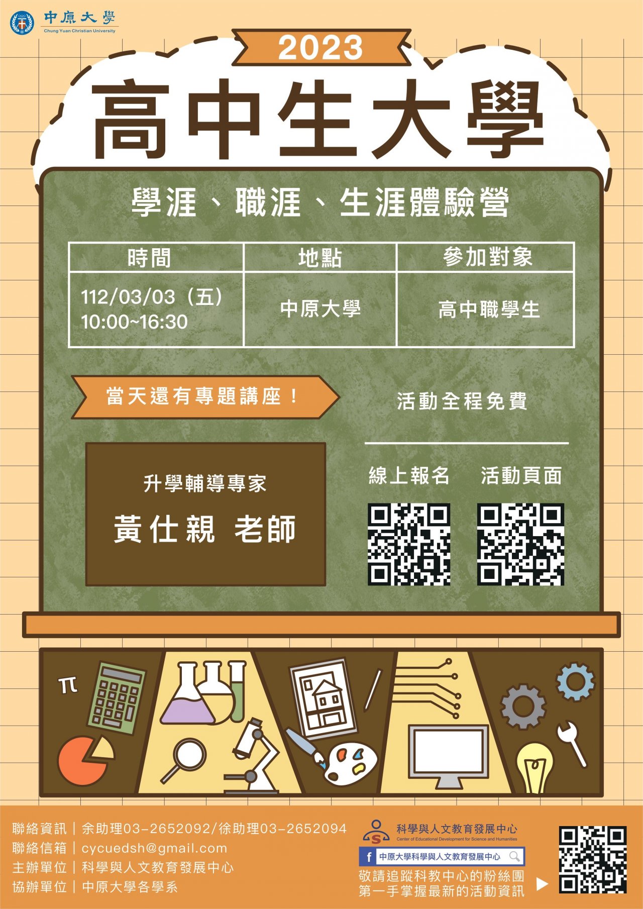 (一)活動主題: 2023 高中生大學學系學涯、職涯、生涯體驗營。