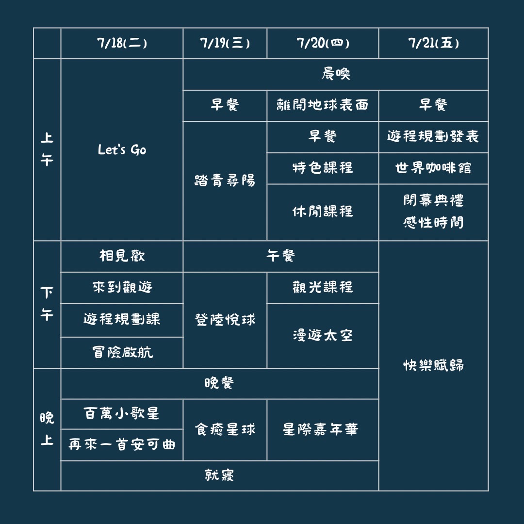三、營隊日期: 112 年 07 月 18 日(星期二)至 112 年 07 月 21 日(星期五) ,共四天三夜。